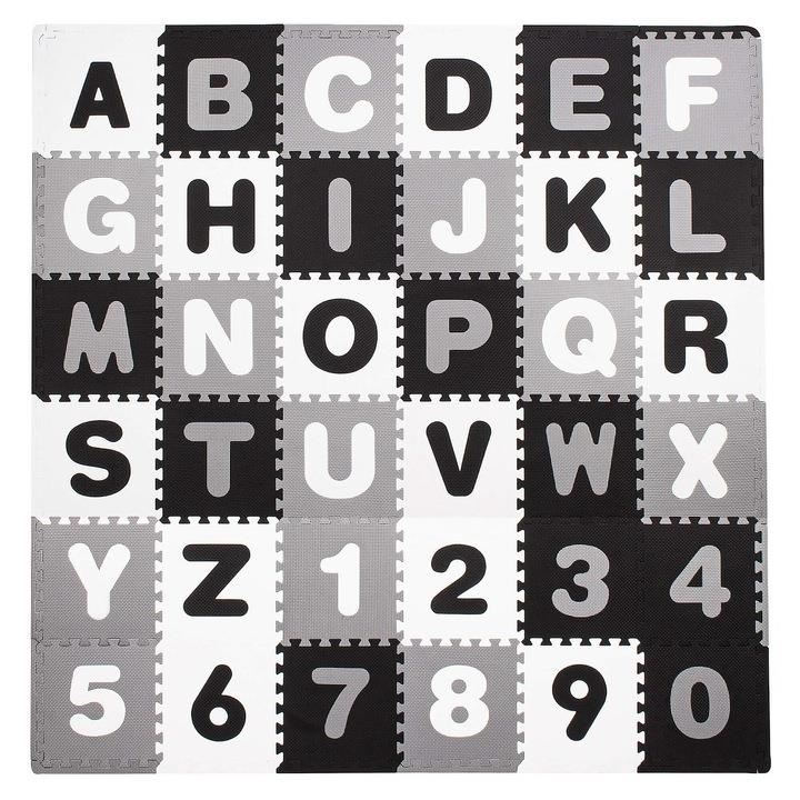 994 leiCovor spuma ptr copii, EVA gri cu negru, model alfabet si numere, 172x172x1cm, Springos